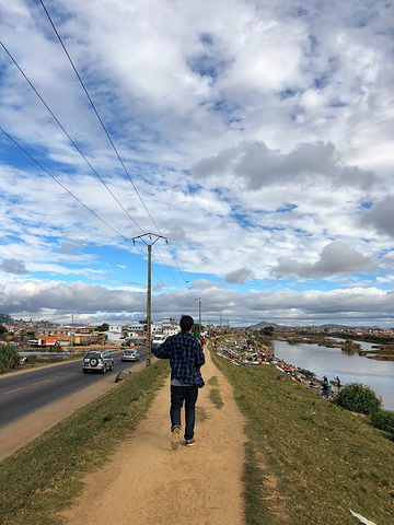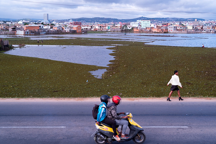 进入首都 塔那那利佛 境内,我们一直沿着城市边缘开车,遇到了自然形成的水系和围绕着它生活的 马达加斯加 人民,他们有的泛舟水上,也许是在捕鱼,有的似乎种水稻一类的作物,有的沿河而居,洗洗涮涮,我示意司机停车休息,顺便拍些照片,翻过一段不高的堤坝,眼前的场面教我惊呆了,沿河岸边密密麻麻都是洗衣服的妇女和儿童,那浑浊的河水,风吹过散发着乡土气息和淡淡恶臭,人民将大量的衣物平摊在岸边的草地上,等着炽热的阳光把其烤干。