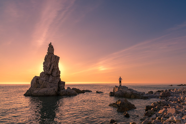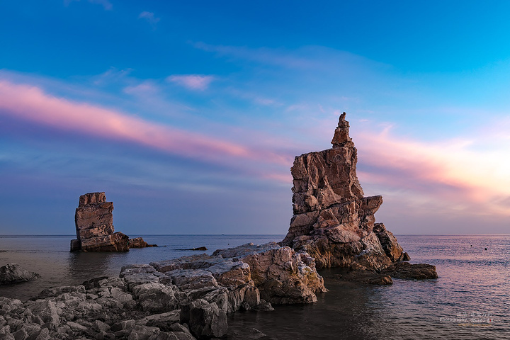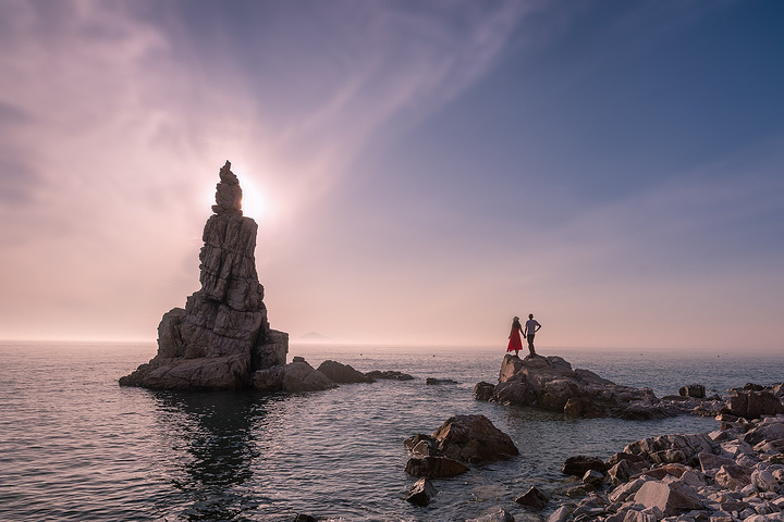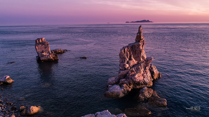 两座巧夺天工的天然巨石,犹如顶天立地的“将军”一般矗立在天海之间,在明动的晚霞与蓝天的辉映下,守护着旅顺这片军港。这里造就了最美夕阳和最美星空的神话。