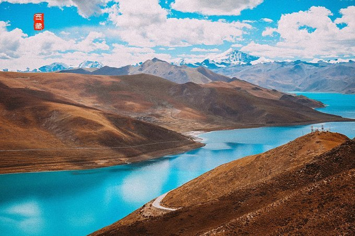 羊卓雍错意为“天鹅之湖”,在这片蜿蜒的蔚蓝面前,一切的色彩都已被掩盖,天地之间似乎只剩下这丝带般至纯至蓝的湖水。