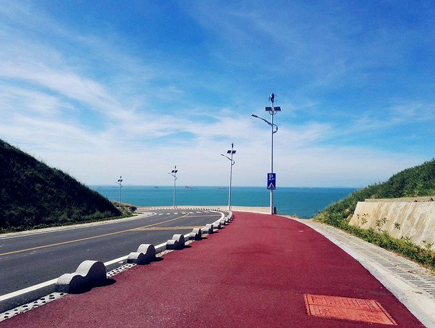 这里是是一个风力发电区,一排排整齐的风车,十分壮观。它们将风力转化成了最洁净的能源,使 平潭 拥有极丰富的风能资源。蓝天、白云、碧海、风车,组成的画面,仿若置身童话仙境一般。