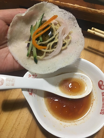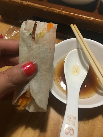 钻石广场是当地一个比较高档的购物中心,不过我们也不想逛街,找了一家专卖贵阳特色小吃丝娃娃的连锁餐厅,等了20多桌终于吃上了丝娃娃。按照盆友们的说法,丝娃娃就是饼卷一切,好吃与否是各人喜好,但是当地特色总要尝试一下的。