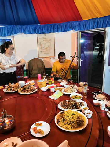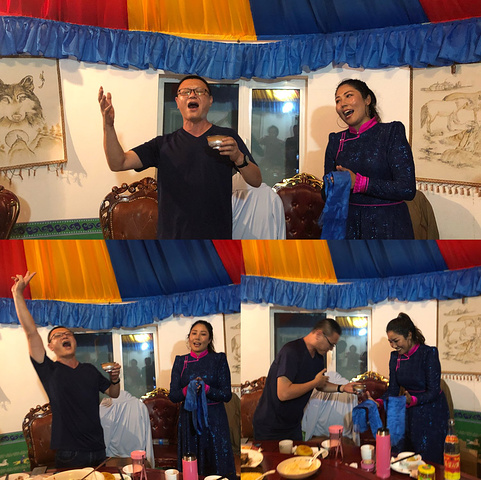 我们的晚宴也开始了,席间,好客的安达又请来了乌兰牧骑乐队,第二次见面,熟悉了礼仪的我们收放自如。