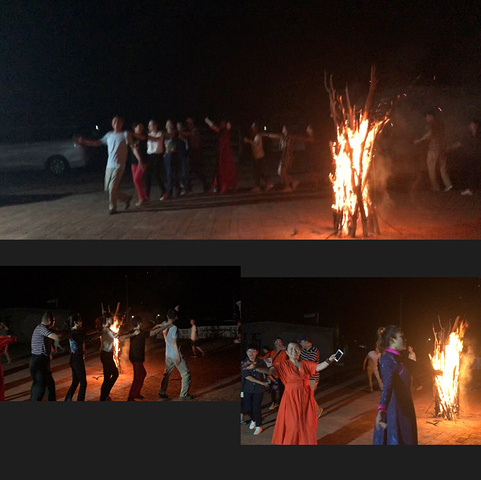 夜渐渐来临,天空拉上了黑色的窗帘,一团红色主宰了这片绿色的草原,篝火燃起,草原的夜空很美,天上的繁星都想拥簇着月亮要高歌一曲,气氛渐浓,篝火的火焰在升腾,我们也在尽情欢呼。