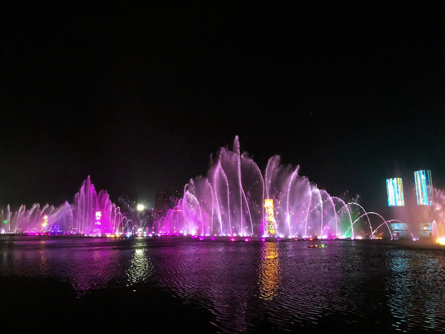 喷泉每隔一首歌喷一次,直到对岸大楼的显示屏关闭,喷泉表演也就结束了。整个过程就像一幅流动的画卷一样,随着歌曲的悠扬婉转跌宕起伏,喷泉也会做出各种不同的变化,加上百变的光影效果,使得整个表演气势磅礴美轮美奂,给人带来视觉、听觉的双重享受。