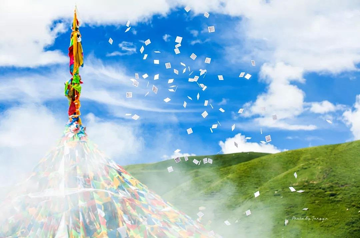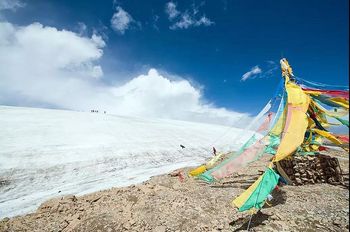 青海有八一冰川,五彩的经幡在冰川脚下飘扬,似乎是到了另外一个世界,诉说着这里的无限魅力。