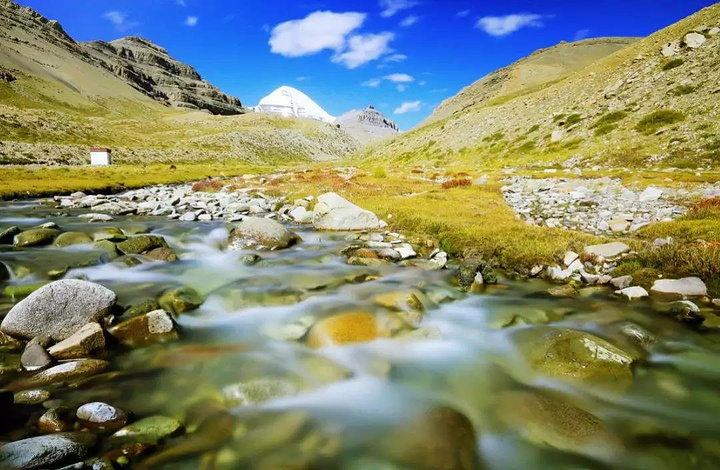 西藏有冈仁波齐,经常被白云缭绕,很难目睹其真容,峰顶终年积雪,威凛万峰之上,极具视觉和心灵震撼力。