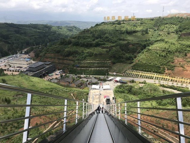 三种方式:景区电瓶车(15元/人)、景区观光扶梯(20元/人)或选择步行。当然看到这么高的室外扶梯,肯定会选择它了,站在扶梯上面整个园区都一览无余。
