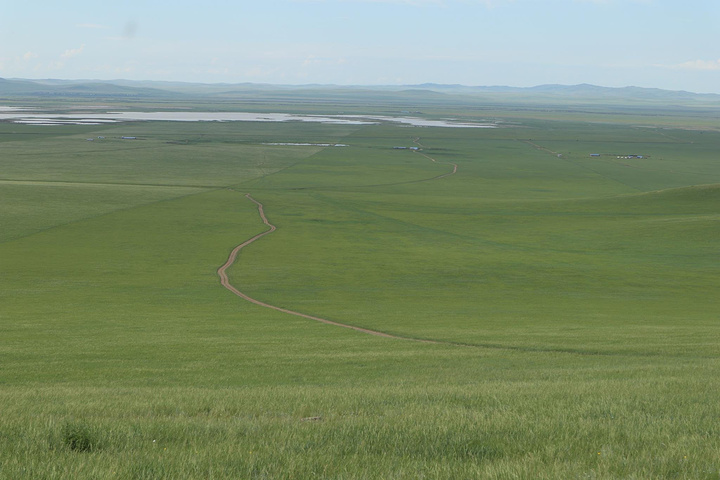 寻龙决影视基地在路的旁边,牌子不大,一不小心就错过去了。沿着车辙一路向草原深处开去,爬上一个山坡,豁然开朗,导演的眼光不比常人。