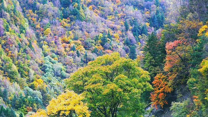 阿坝州黑水县拥有亚洲面积最大的彩林区——黑水彩林,,由达古冰山、三奥雪山、奶子沟、卡龙沟、红军大峡谷“五沟”彩林构成。