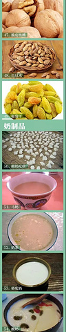 大盘鸡、拉条子、烤羊肉、烤包子、馕坑肉、抓饭、缸子肉、丸子面、米肠子、面肺子、纳仁、鸽子汤、酸奶、冰淇淋、奶皮茶、哈密瓜、香梨、白杏、大枣、无花果、葡萄干、沙朗刀克……47个民族万种美食,没有一个256g的胃千万别来!