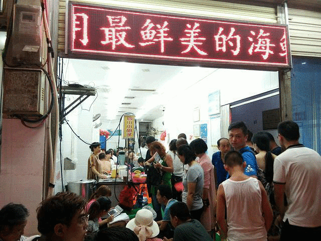 买完海鲜,我们来到了小胡子家门口,看着门口都站满了人,还有一些人手上拿着牌子坐在小凳子等着,一眼看整条街只有小胡子家门口是在排队。