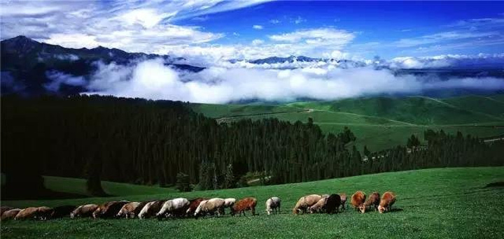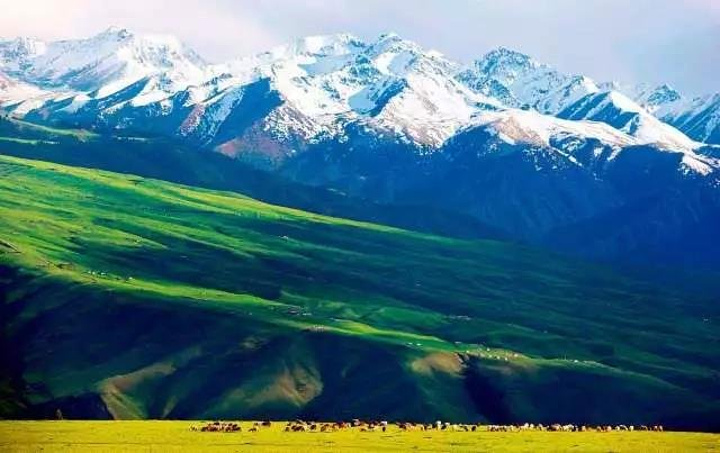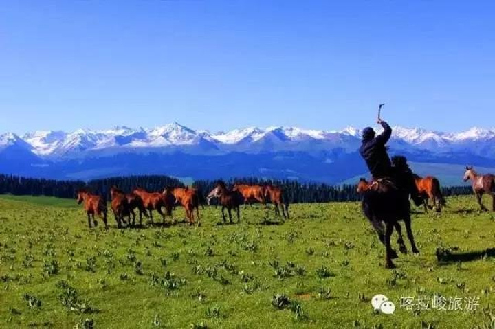 7月,天山雪水慢慢消融,喀拉峻晴空万里,水草丰美,牛羊成群,美丽的勿忘我点点装饰千里碧毯,随处可见的是不经人工雕琢的自然之美,如果有幸还可以遇上哈萨克族人的民族节庆,体验一把浓郁的西域民族风情……