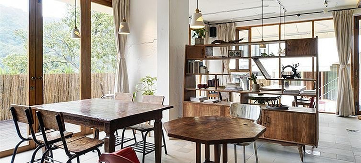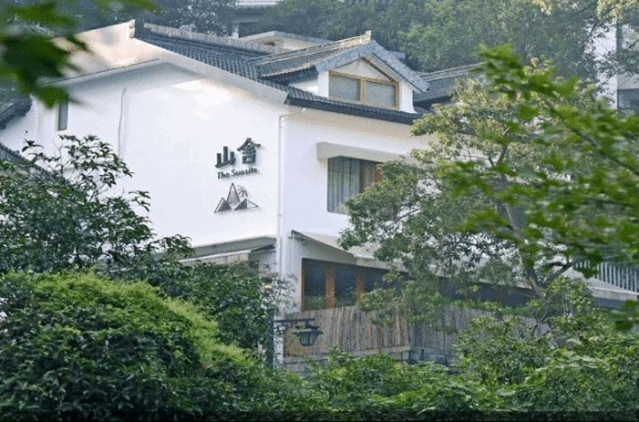 龙井之下,九溪之源,桂花千株,沿山道而上。山舍便由依山势而建的三幢民居改造,隐与自然村落之中。白墙灰瓦木窗,白灰原木三色,破除多余的设计和色彩,简单而干净全,共15间房,江南古镇老家具与陶瓷手作、当代设计作品陈设。