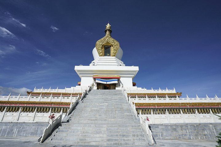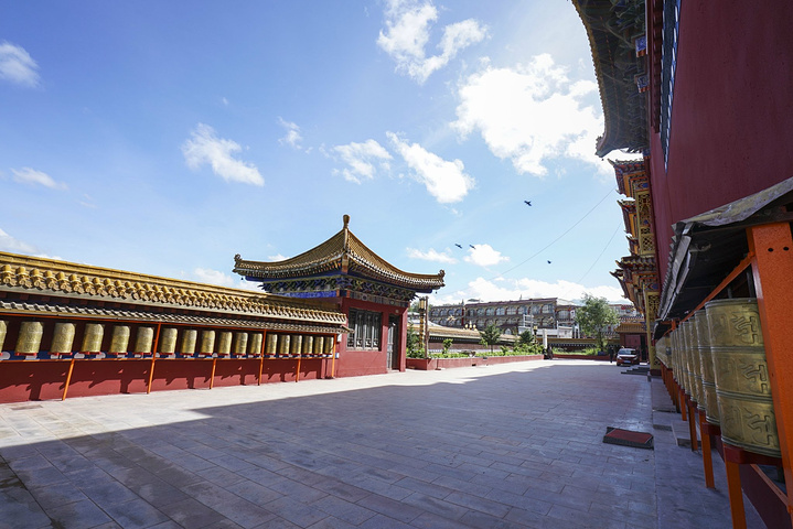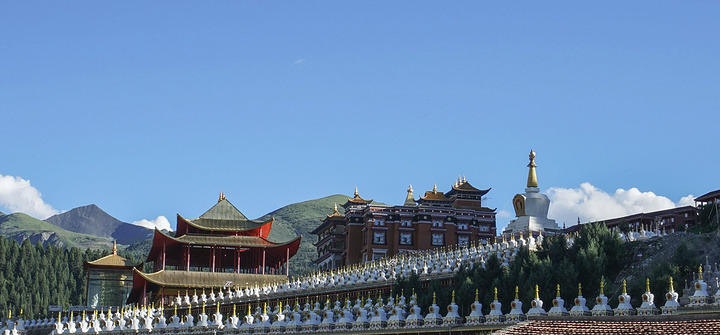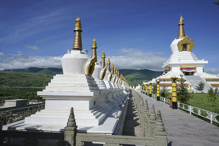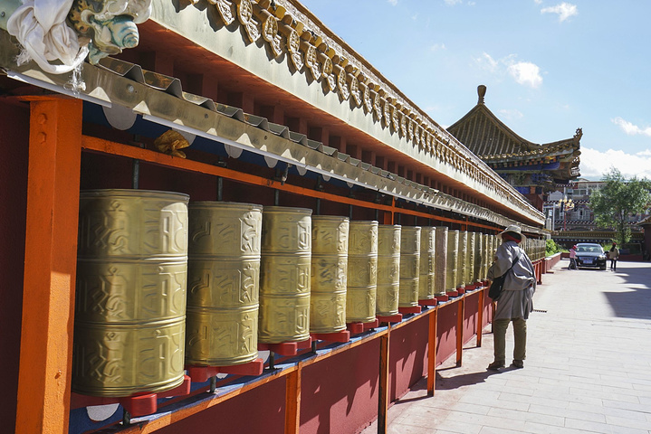 白塔寺,全名为“色西底那仓寺”,由甘孜寺那仓活佛创建。我们去的时候正好碰到很多信徒前来祈福,他们手里拿着转经筒不停的转着,抚过每一个转经筒,嘴里年年有词,很是虔诚。听白塔寺周边的藏民介绍,白塔寺还在修缮中,目前已经花费近3亿元,寺内的菩萨都是镀金的,瞬间被震撼住了。