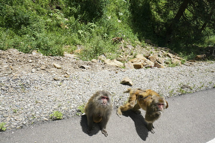 公路旁边山上很多野生的猴子,一点也不怕人,可见这里的生态环境有多好~