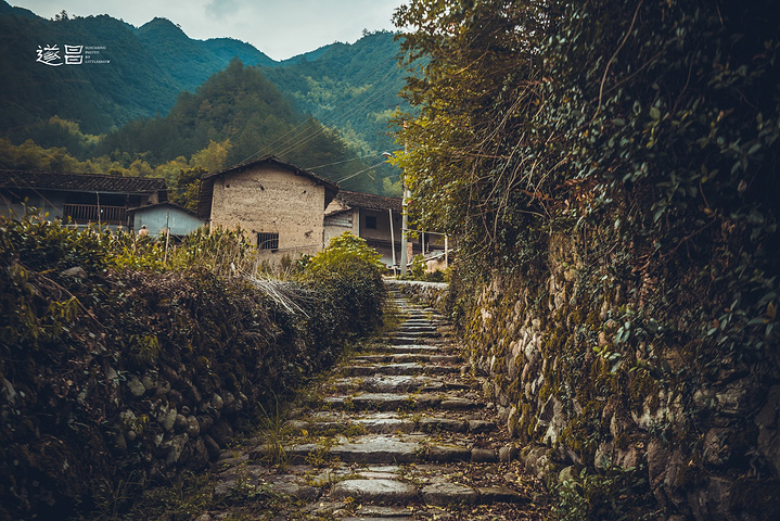 独山村是一座埋在大山里的村子,是遂昌古代闻名的村寨,村子保留着古朴的风貌,村中有明代清代修建的宗祠,明隆庆年间的隆庆石牌坊、明嘉靖年间建立的寨墙等古代建筑。南北两端有寨墙环绕,古道由寨门进出,地形险要。古寨离主紧邻主干道,交通便利,这是来古寨的路,青石铺路,落英缤纷。
