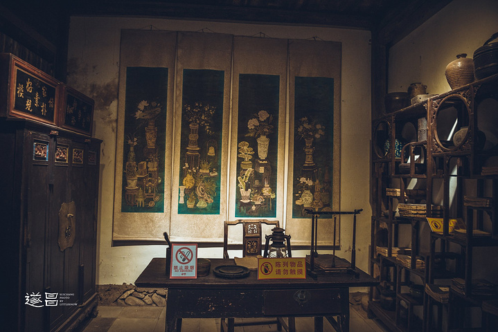 烟雨蒙蒙,古朴的黛瓦房檐是这里年代久远的象征。这里便是古民居展陈馆,里面是明代家居的还原场景,可以更清晰的了解当地的历史文化。