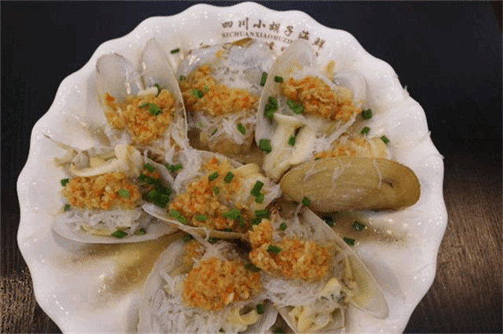 这儿的扇贝跟平常吃的还长得不太一样,海南人管这个叫带子,一开始弄得我摸不着头脑,想着带子是啥玩意儿。上来发现就是我们说的扇贝。粉丝扇贝,吼吼,叫我怎能不爱它。明显买少了,2个完全不够吃!