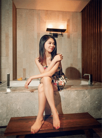 小小的浴缸,在这个上午成了我们自拍的摄影棚