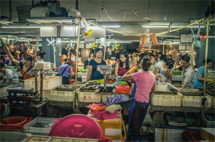 这里的市场各色海鲜让你看的眼花缭乱。