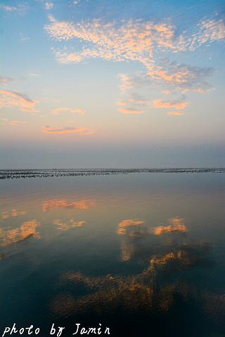 太阳落下后余晖照亮了天际,水共长天一色。此时的大海仿若一面镜子倒映着天上的彩霞,天空之境看来也不再单单属于茶卡和乌尤尼