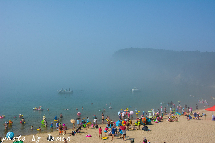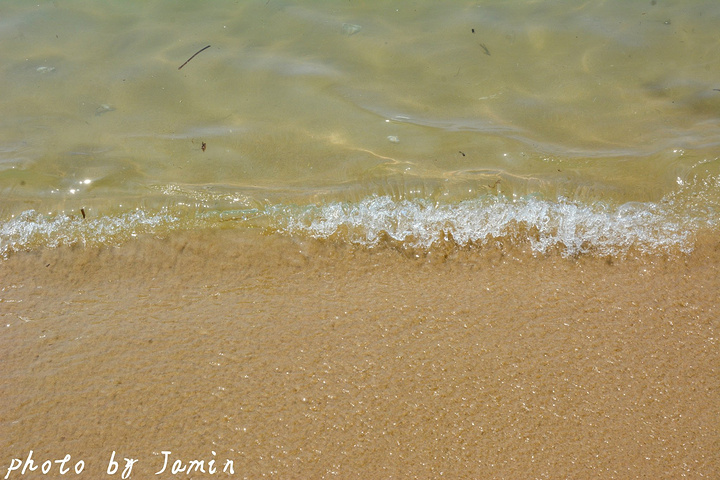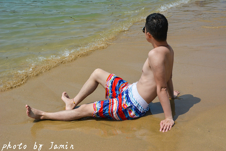 上午的水涨了上来,非常适合游泳,而且水也清凉,虽比不上泰国的安达曼海,埃及的红海,但在我们北方来说已经是难得的清澈海水了,就算我游到已经够不到底的地方我还能清楚地看到海底的沙石