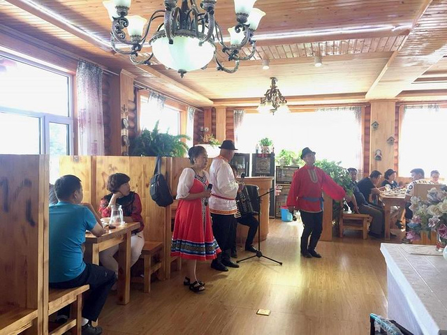 9点30出发,沿路况很好的G332行约130km到达额尔古纳市,中途停下看看油菜花。11点半左右,在额尔古纳市以懒人模式找到玛利亚列巴房用餐,美味的俄罗斯菜品、格瓦斯(一种面包发酵的饮料)、大列巴(面包),还有能个善舞的俄罗斯族老爷爷老奶奶,拉着优雅手风琴的小伙子,让我们度过了愉快的午餐时光。