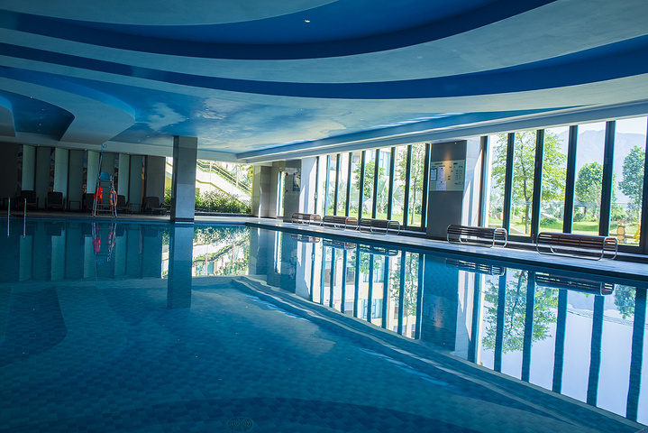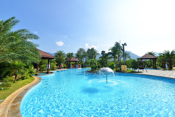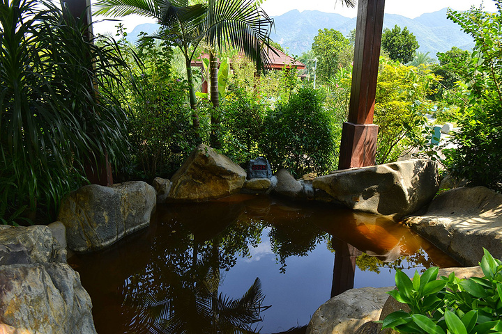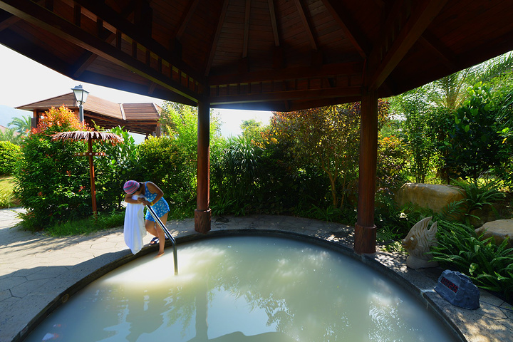 酒店有45个偏硅酸特质的美容中药温泉池及溶洞温泉池,开放时间从早上8:30到晚上12:00。中药温泉池虽然在室外,但是都有亭阁相遮,四围绿意昂然,鲜花鲜果满树满园,池在景中,人在池中,便仿若花间美人,山中仙客。
