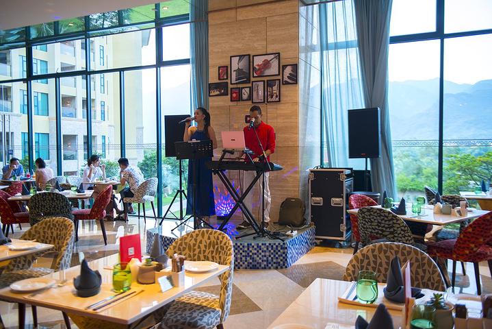 餐厅设有座位几百个,有浪漫两人位、欢乐三人位、休闲四人位,还有家庭圆桌位,公司长桌位,就算一个人用餐也绝不会感觉唐突。晚餐时刻还会有男女驻唱,在轻柔欢快的音乐声中,感受刀叉碰撞的美味。