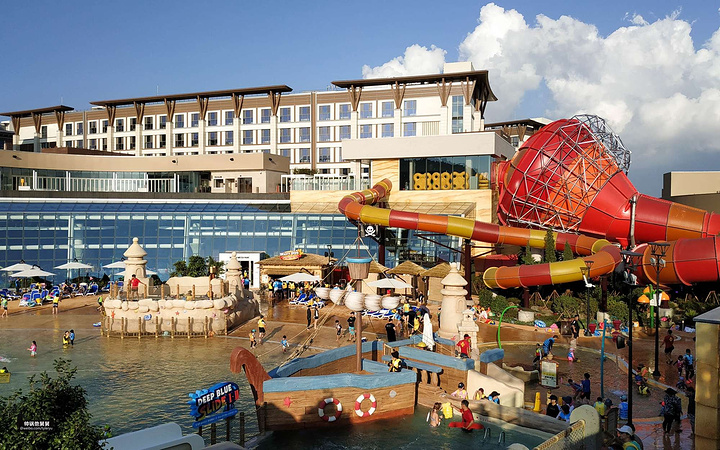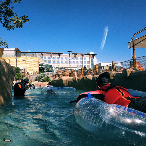 我自己抱着个救生圈在浪涌弯道里漂了三圈。让我想起了老挝万隆的漂流,晚上和女儿在河边吃饭时,看到老外一个个拎着空酒瓶抱着轮胎从河里爬上来。挺后悔下水之前没开瓶啤酒带上,当然是玩笑话了,园区内应该不让带零食。漂一圈的距离并不算短,中间还可以漂到室内娱乐区。虽然这个漂流河没有落差,但里面有造浪设备,所以个别段落并不平静。强烈建议带孩子下水体验一下。