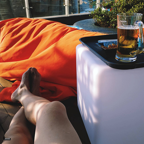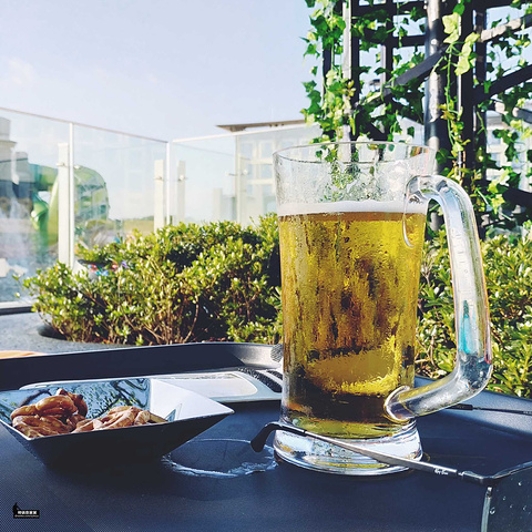 中途有点饿,想买点东西吃,看到好多人排队在买饮料和热狗。干嘛跟人挤呢? 直奔二楼的花园餐厅,12000韩元点了一杯干啤还送一碟小饼干,躺在懒人沙发里待了半天。要离开时才发现原来二楼的花园餐厅也带着小泳池,早知道喝着啤酒泡个澡该多好呢~后悔了不是么!