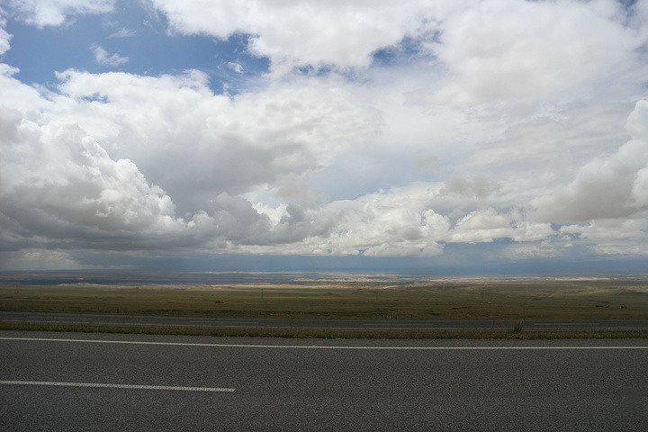 去往茶卡的路上,让我们心生感慨,草原的美真是让人震撼,即使天气不是那么好,但一望无际的草原、头顶看似汹涌翻滚但又似触手可及的白云、远处与云雾融为一体的山峦、伸向远方直入天际的公路……草原的美就这样突然闯入了我们的视线。