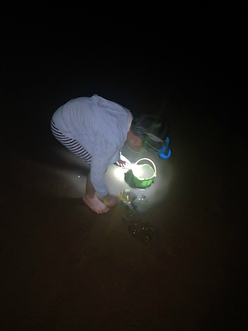 可能是因为晚上,这里人很少,沙滩的沙很细,小朋友们一到沙滩就很兴奋地赤脚奔跑,由于天黑了不能下海,于是挖螃蟹成了他们的主要工作,好在我们准备充足,工具齐全,一晚上居然真捉到了十几只小螃蟹。来自游记绝美花鸟岛,夏日慢生活