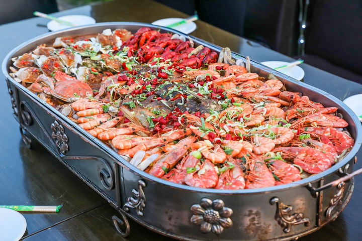 佛库伦夜市在佛库伦湖的岸边,长白山不眠夜几个大字十分耀眼,靠湖畔的路上一路有很多小吃的摊位,可以品尝到各色美食,也有餐厅可以用餐,我们选择了湖畔的一家餐厅,点了一份超级大盘海鲜大咖,啤酒配上海鲜,那感觉叫一个爽!来自游记在22℃的清爽假日,邂逅更美的长白山