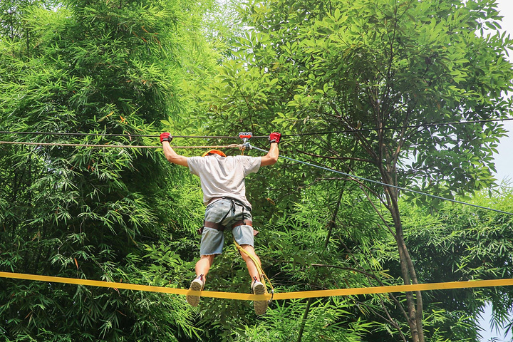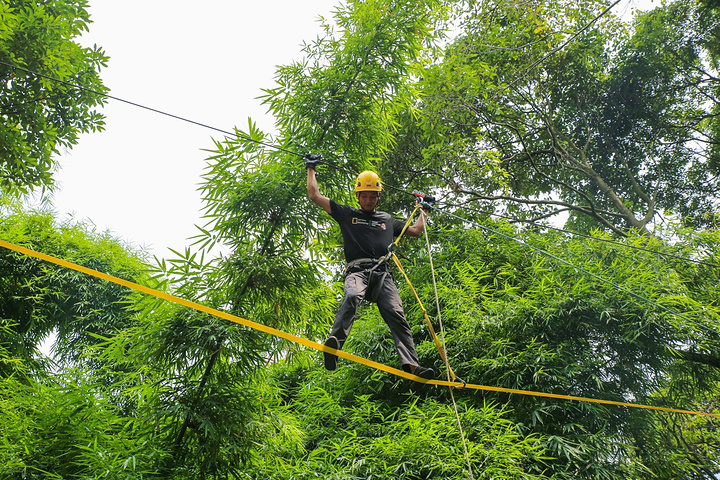 在冒险园内,我最喜欢的就是这个飞索了,采用了法国PETZL安全装备,ACCT美国绳索课程技术协会标准设计建造。滑索有长线和短线,可以根据自己的不同需求来进行选择,全程都会有专业的教练来带领,会在安全无忧的环境下,享受丛林飞跃的刺激。在盛夏的天气里,张开双手。飞跃丛林,别提有多惬意了。