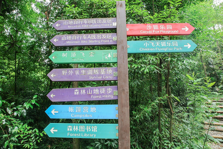 冒险园内的指示牌,可以看出这里面有很多的项目供游客游玩,让周末的时光不再无聊。