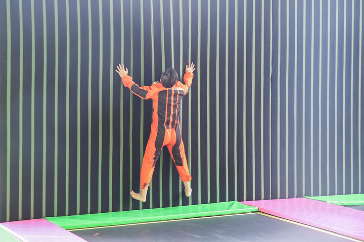 特别喜欢这个网红的蜘蛛人,穿上特制的衣服,跑过去,粘在墙上,感觉特别有趣。