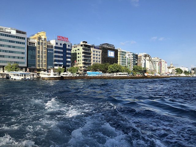 由于是东航上海直飞,防止堵车,一早从南京坐高铁去了上海站,对面就是5号线大巴到浦东T1楼,11点多的飞机没有晚点。飞机说实话位置很挤,看电视眼睛很累,冷气很足,要穿长裤长袖,最好带个毯子。7个半小时后到达马累国际小机场。马累的时间和国内差3个小时,到达那里已经是17;30左右了,水飞16:00停飞,所以只能在马累市区住一夜第二天再水飞上岛。机场到市区渡轮1美金,网上订好宾馆,会有人负责接送。市区道路有点窄,摩托车很多。