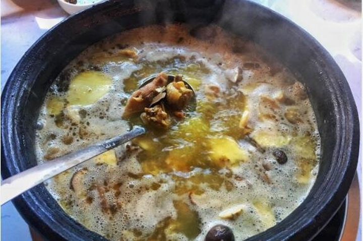 这家店是客栈老板推荐的! 果然名不虚传, 实打实的底料,而且食材都十分新鲜!鸡肉即使长时间煲也不会很老,还很紧实的!