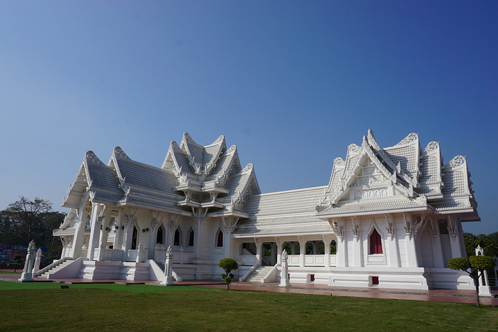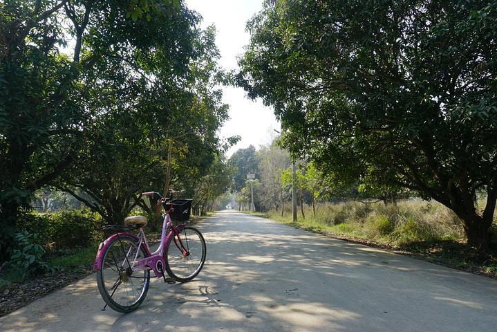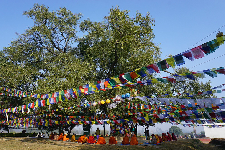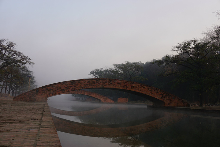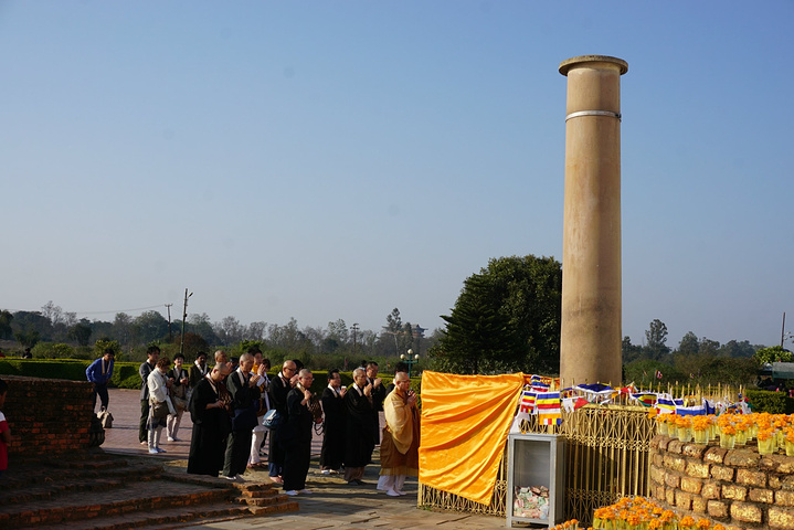 第二日4:30起床,5:00早课,有前一天晚课的经验,今天显得轻车熟路,除了还是找不到经文念的是哪段,胡乱翻书之外,其他只要跟着做就不会出错。早斋后开始了蓝毗尼一日游,清晨的蓝毗尼清净异常,人工河上泛着晨雾的层层水汽,氤氲而飘渺,荒草丛生的空地如同迷雾森林,只闻鸟鸣,不见人踪。先去镇上租了辆自行车,园区太大,靠11路根本逛不过来。之后去了蓝毗尼花园(释迦牟尼诞生地),这也是园区的主体部分,毕竟其他寺庙区都是因他而建。花园里是通体白色的摩耶夫人寺,圣树,摩耶夫人洗澡的圣池和古印度孔雀王朝时期阿育王来此寻访佛迹时所立的阿育王石柱,后三者在《大唐西域记》和印度古籍中均能找到文字记载。圣树下围坐着一圈僧人,大约是在冥想吧,还有很多民众绕圣树顺时针转经祈福。虽然人多,但整个花园很安静,大家都生怕打扰到僧人的修行。
