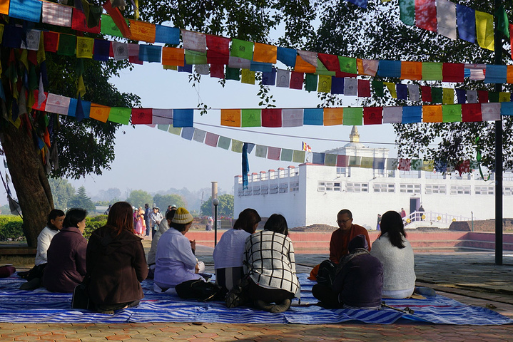 其实于我而言,蓝毗尼似乎让我看到了另一个世界,这里居士间无论男女相互都称师兄,很多人是来此静心修行的,要一个月的时间甚至更久。第一天晚斋后和邻宿的姑娘出去随便走走,她在旁边的尼泊尔寺点了三盏长明灯,一边点一边诵经,虽然我完全不知道她在说什么,但能感觉到那种虔诚。回到宿舍,同屋的姑娘也在诵经,可能于她们而言,这就是生活的一部分,虽红尘辘辘,却自得安宁。而对于像我这等的凡世中人,一天的时间就觉得压抑,只想着逃离,我爱这大千世界,做不到心静如水。其实,在蓝毗尼,无论你信与不信,佛就在那里,总是有很多人相信,只要尊重就好。