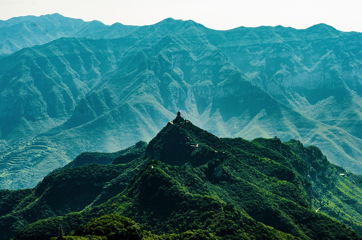 登临玉皇顶,极目远眺,群山巍峨却尽在眼底,山脉如同盘龙蜿蜒。