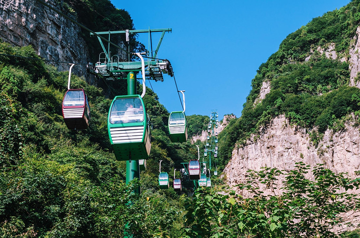 和以往的缆车一样只能坐到半山腰,过程中缆车微微轻晃,不觉惊险,却好似重回摇篮似的安稳,在自然的怀抱中,随着缆车渐高,山峦叠嶂和满眼的绿色再加上天空的蓝,构成了一幅幅秀丽的画面。