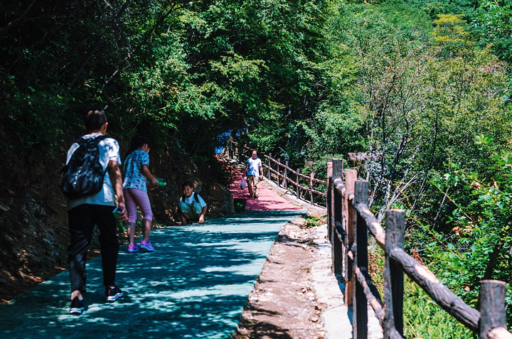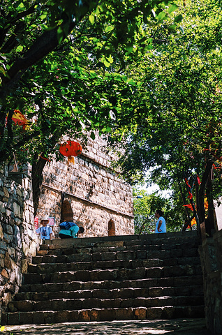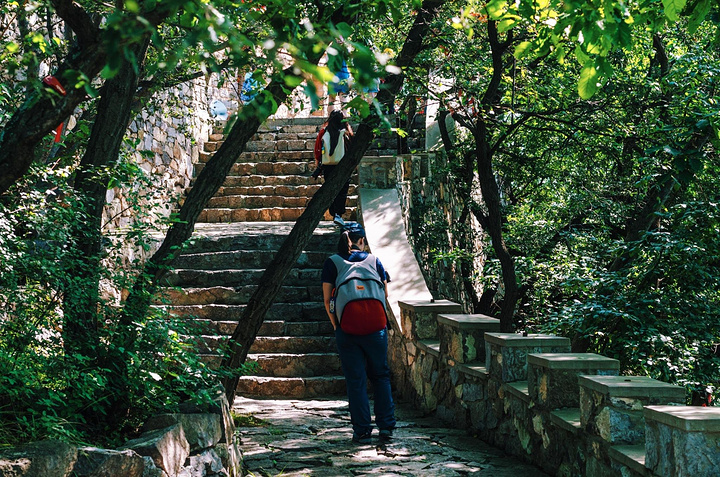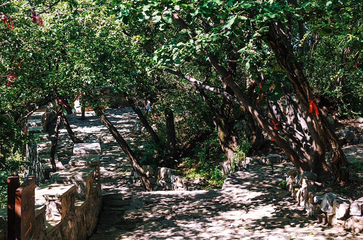 接下来是一段必不可少的爬山路,好在石阶很平坦很好走,绿树成荫,还有阵阵凉风袭来。