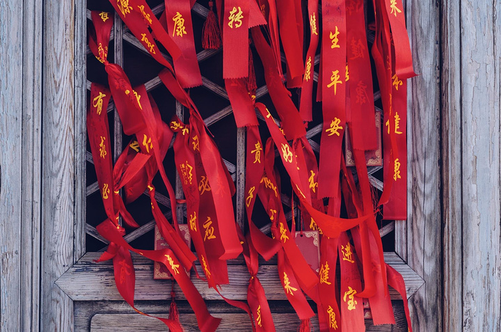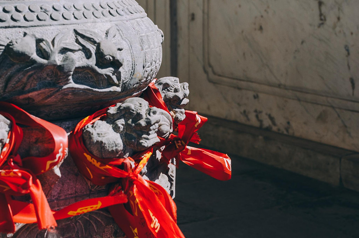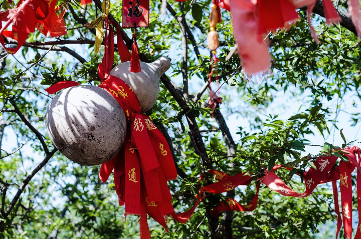 来这里祈福的人不仅把寄托愿望的红绳系在白玉围栏和窗户上,还有人系在了树上和葫芦上,不管怎样这也是一种寄托和期盼。