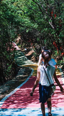 从玉皇顶下山时没有多少台阶可以走的,只有到土地庙那段路是台阶路,其他的都是下坡道,在这里他有一个好听的名字叫彩虹路又叫做好运坡。