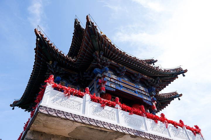 玉皇阁四周有汉白玉围栏,内供奉的是玉皇大帝、日、月神。
