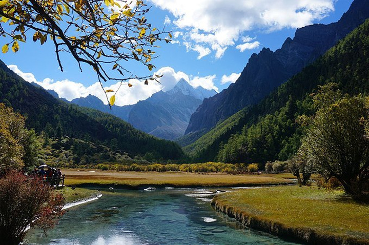 稻城亚丁,以它独特的美,成为万人心中浪漫的天堂。碧蓝如洗的天空下,鹅黄色宽阔的牦牛坪草甸,被秋霜染黄的原始森林,高耸入云霄的皑皑雪山,潺潺流动的山泉......拼凑出这个诗情画意的雪域圣地。