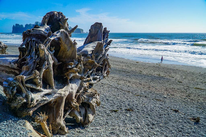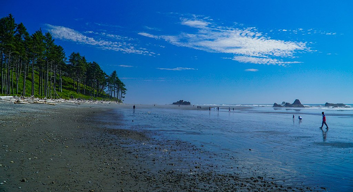 奥林匹克国家公园的三个维度:雪山,雨林,大海。雪山滋养了雨林,那么大海与前两者有怎样的关联呢?从Forks镇一路向西,我在海边(地图上的J点,Rialto Beach)找到了答案。