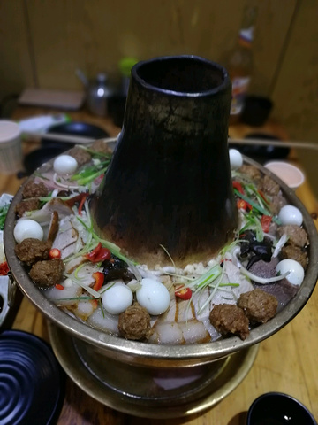 晚上的青海土火锅,热气腾腾全家福。